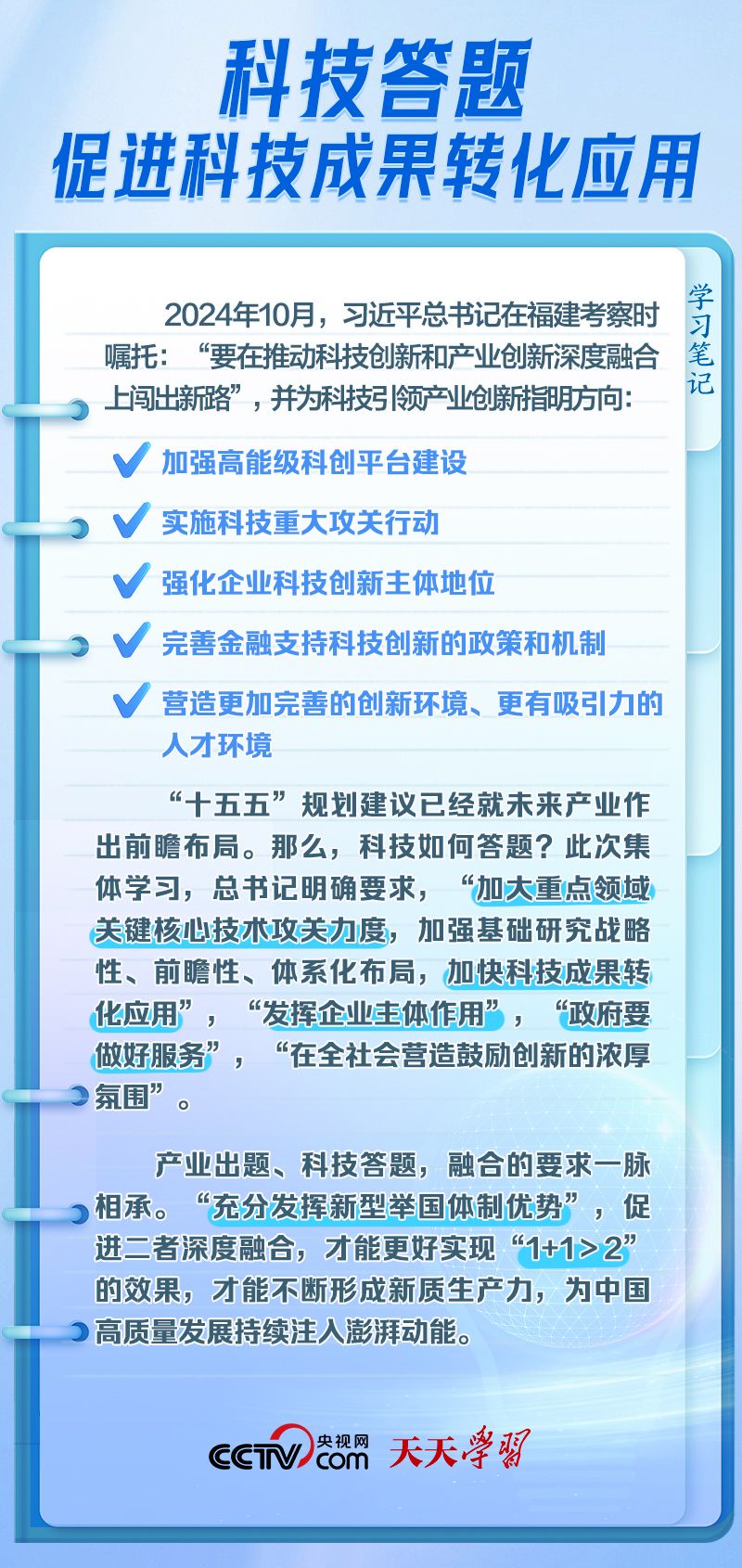 习近平总书记指出,科技突破的程度,很大程度上决定未来产业发展的速度、广度、深度。要充分发挥新型举国体制优势,坚持“产业出题、科技答题”。