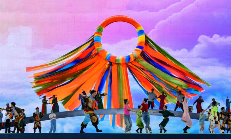 7月18日晚,奥体中心体育场流光溢彩,“千古西辽河 万象通辽城”——通辽市第三届西辽河文化节在虚实交织的光影奇境中盛大启幕。这场以“光影为媒”的文艺盛宴,通过古今对话的独特叙事手法,让西辽河文化的千年记忆与现代风采在舞台上交相辉映。这些跨越时空的文化共鸣,恰是西辽河畔各民族在文化交融中凝聚共识、守望相助的生动写照。千百年来,各族儿女在共有的精神家园中相依,于文化共鸣里凝聚起了休戚与共的共同体力量,也让铸牢中华民族共同体意识的根基愈发坚实。