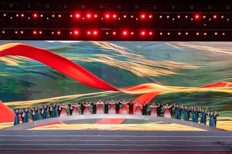 现场气氛有多燃?开场歌曲《爱在西辽河畔》旋律未落,观众席已化作星海;舞剧《黄金面具》的千年舞姿,将古老文明的光芒刻入时空;音舞诗《溯水寻源》的悠扬韵律,引领观众探寻文化根脉;当压轴曲目《摘一朵马兰花你就走吧》深情响起,全场观众齐声应和。