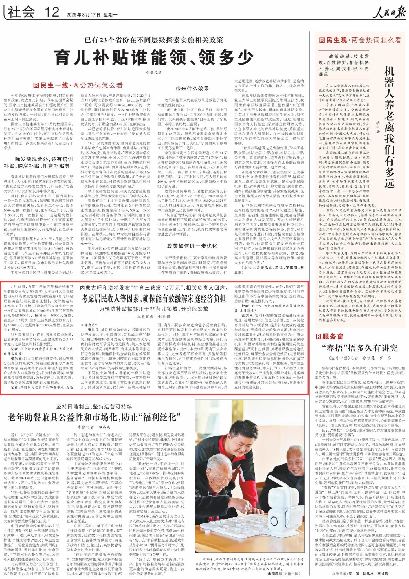 张洪民:要对补贴的发放流程进行全面梳理,运用数字化、信息化手段,进一步简化育儿补贴的申领手续,提升补贴发放的速度与精准度;要确保稳定的资金来源,科学划定专项预算资金,逐步探索财政支持为主、资金来源多样化的育儿补贴政策;建立资金保障机制,加强对补贴落实和资金使用情况的全程监督,严厉打击截留、挪用补贴资金等违法违规行为,确保资金安全规范使用;完善配套措施,以创建全国婴幼儿照护服务示范城市为契机,大力发展托幼一体化服务,增大普惠性托育服务供给,为入托的0—3岁婴幼儿家庭每年发放600元托育机构照护补贴,为备案的普惠托育机构发放每托位500元的一次性建设补贴和每月75元的生均补贴,营造生育友好的社会氛围。(记者 赵景锋)
