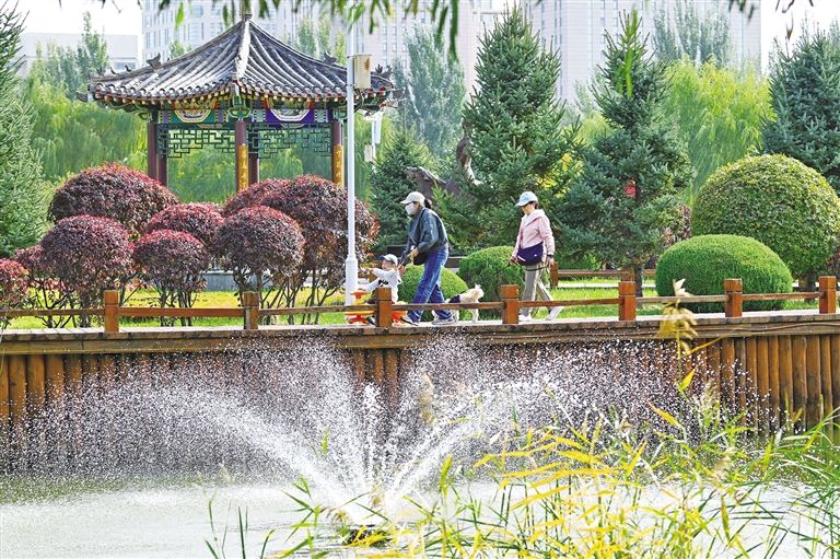 10月11日,呼和浩特市草原丝绸之路文化公园秋意正浓,不少市民趁着好天气前来漫步赏景。近年来,呼和浩特全力推进“美丽青城”“公园城市”建设,截至目前,首府建成区绿地率达41.13%、绿化覆盖率43.95%、人均公园绿地面积17.06平方米,三大核心绿化指标均达到国家生态园林城市标准。草原云·内蒙古新闻网记者 王磊 摄